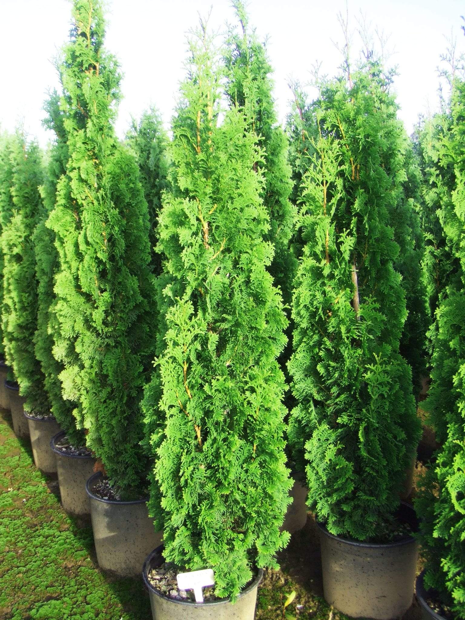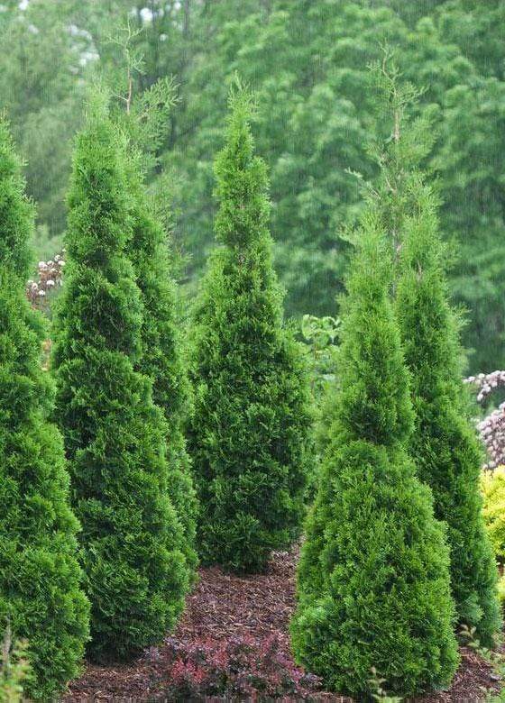 Degroots Spire Arborvitae trees are a narrow upright very fastigiate form of Eastern arborvitae with medium-green, twisted foliage. The outline is less smooth and symmetrical than most other upright arborvitae making it even more interesting. This cultivar is quite suitable as a solitary exclamation point in the garden or for use as a formal hedge.