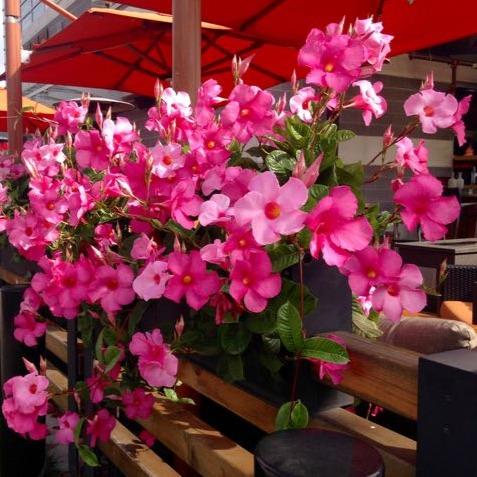 Dipladenia is an excellent choice for creating your dream tropical oasis at home. Native to South America, this drought-tolerant climbing plant vine adds a pop of color to any balcony, deck, hanger baskets or patio and grows well indoors. For the best results, grow Dipladenia indoors or outside in full-sun and moist, well-drained soil.