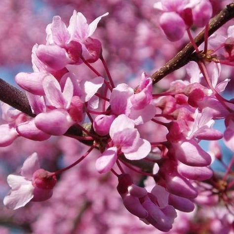 Bursting forth with delicate pink flowers in large clusters before the leaves emerge, Redbud is an attention grabbing tree. The Rosy-Pink blooms appear in late winter or early spring. Soon after, dark green, heart-shaped leaves begin to form a beautiful backdrop, which makes the rosy-pink flowers stand out even more.