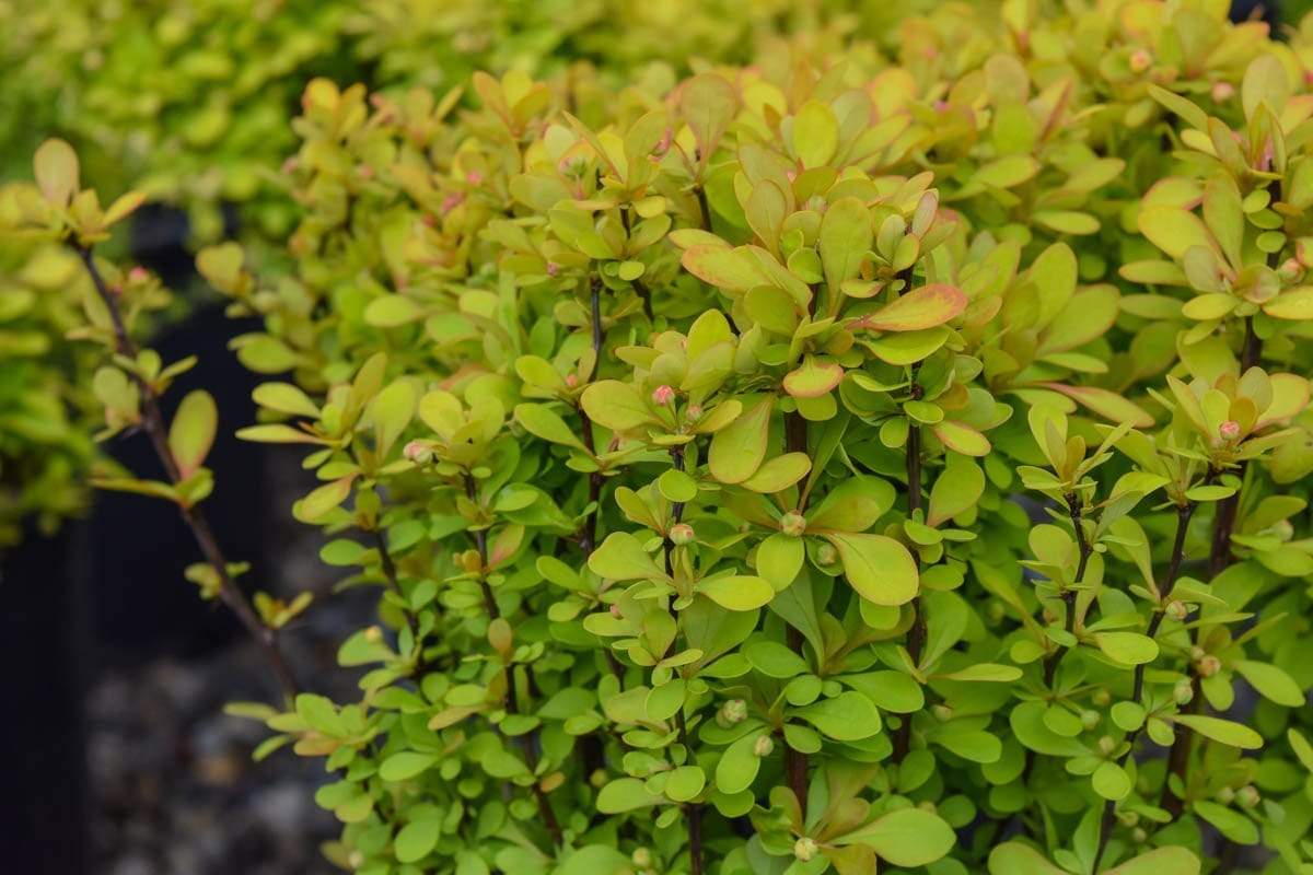 Bright-yellow leaved Gold Pillar Barberry Shrubs have a similar shape to Helmond's Pillar Barberry. Produces bright golden foliage with red new growth in the spring.