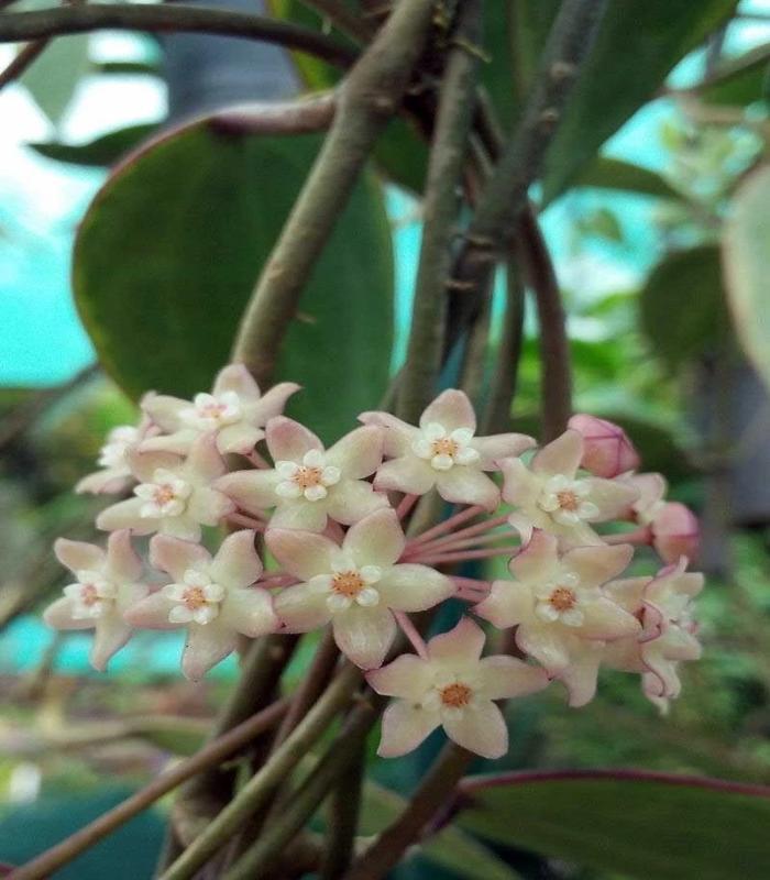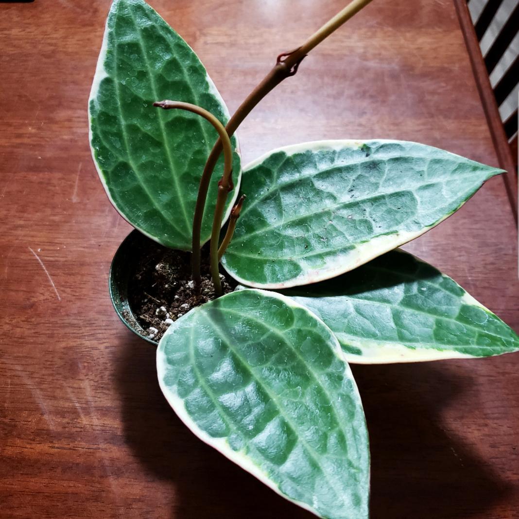 The Variegated Hoya Macrophylla is a neat looking plant. Much like the Hoya carnosa, it has variegated foliage that is wider and has distinctive creases in the leaves. Attractive foliage and waxy flowers, which can be highly scented, make these plants popular with indoor houseplant growers. They prefer to be grown in a warm, bright room.