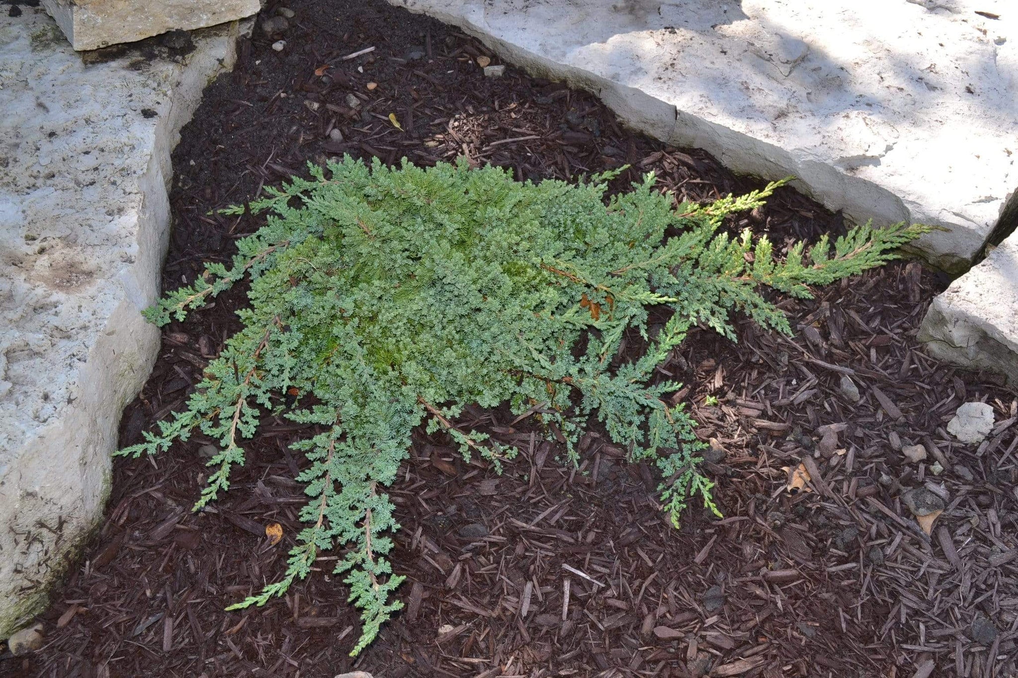 Juniper procumbens Nana is a thick mound of low growing branches that radiate from the center of the plant and create a dense evergreen groundcover. Vivid green new growth turns a delightful blue-green as it matures. Makes an easy to care for heat-tolerant evergreen groundcover.