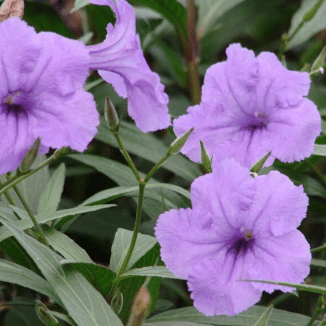 Mexican Petunia is a herbaceous perennial known for its vibrant violet-blue blooms, and dark-green slender foliage. Native to Mexico and western South America, this tropical plant has a shade-loving nature and is fairly heat tolerant. This multi-stemmed plant is drought tolerant, but grows best in wet conditions.