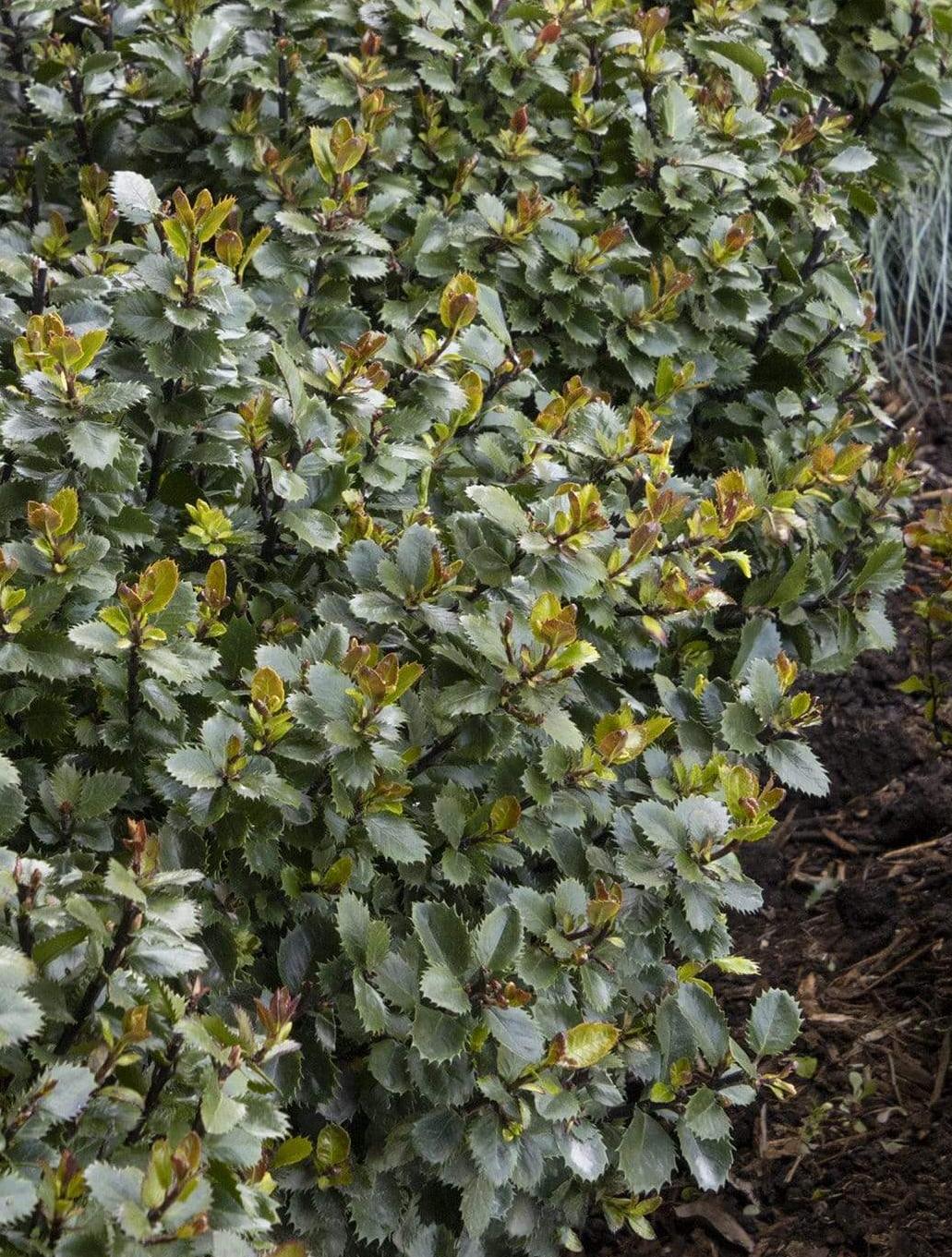The beautiful Scallywag Holly is a compact holly which makes it a great low growing evergreen plant for small gardens.  Its dark green foliage is a show stopper and turns a purple-burgundy hue in the fall and winter. The structure makes it perfect for a border or foundation planting. Scallywag Holly works well as an informal edge as is also ideal for pots or raised planters