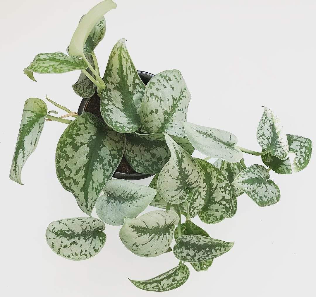 Silver Satin Pothos has intriguing silver and green tear-shaped leaves with a tendency to trail and cascade. The silver coloring of the leaves is iridescent and blends in well with any color decor.